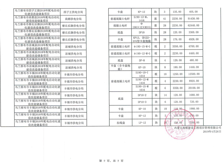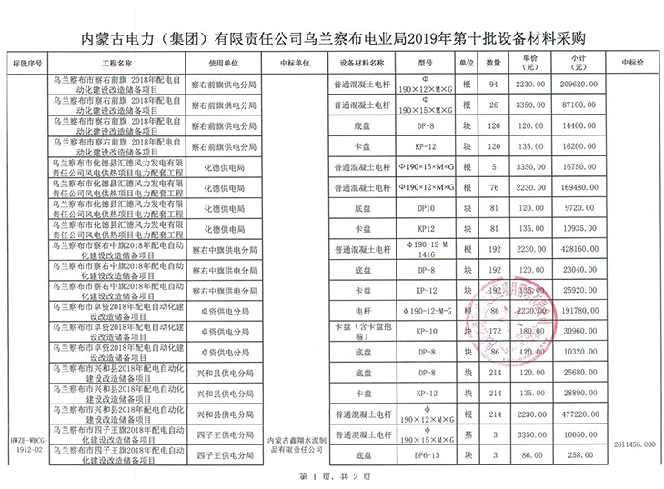 內蒙古電力(集團)有限責任公司烏蘭察布電業局中標