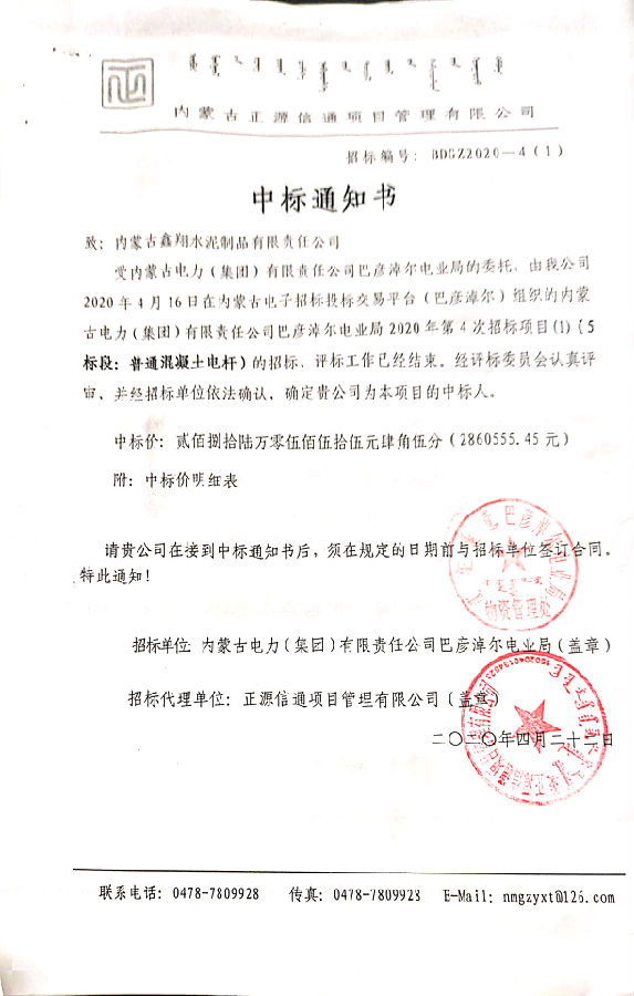 內蒙古電力(集團)有限責任公司巴彥淖爾電業(yè)局2020年第四次招標項目(1)