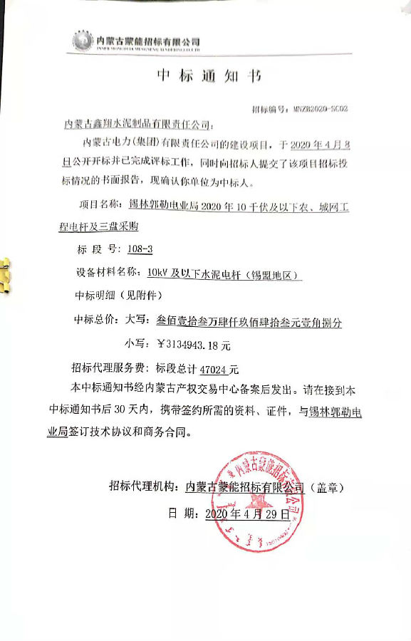 錫林郭勒盟電業(yè)局2020年10千伏及以下農(nóng)、城網(wǎng)工程電桿及三盤采購(gòu)