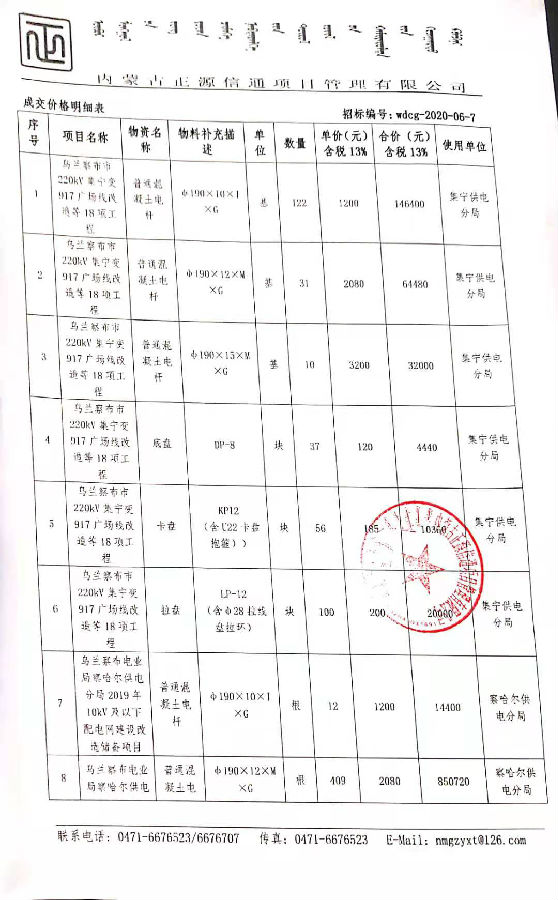 內(nèi)蒙古電力(集團)有限責(zé)任公司烏蘭察布電業(yè)局2020年第一批設(shè)備材料采購招標