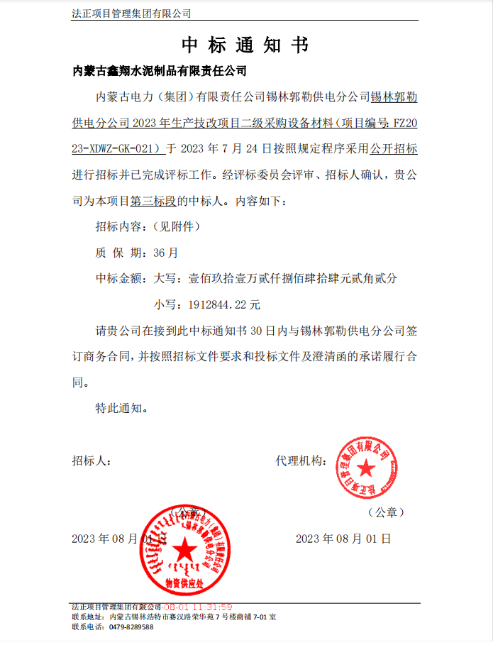 我公司中標-錫林郭勒 供電分公司 2023 年生產(chǎn)技改項目二級采購設(shè)備材料